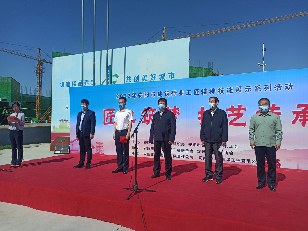 5月16日,由安陽(yáng)市住建局、安陽(yáng)市城建交通水利工會(huì)共同舉辦的“匠心筑夢(mèng) 技藝傳承”2022年度安陽(yáng)市建筑行業(yè)工匠技能展示活動(dòng)在安陽(yáng)師范學(xué)院教學(xué)實(shí)驗(yàn)綜合樓項(xiàng)目工地舉行。集團(tuán)公司常務(wù)副總楊金貴、副總經(jīng)理王福民、王超帶隊(duì)參加了活動(dòng)。